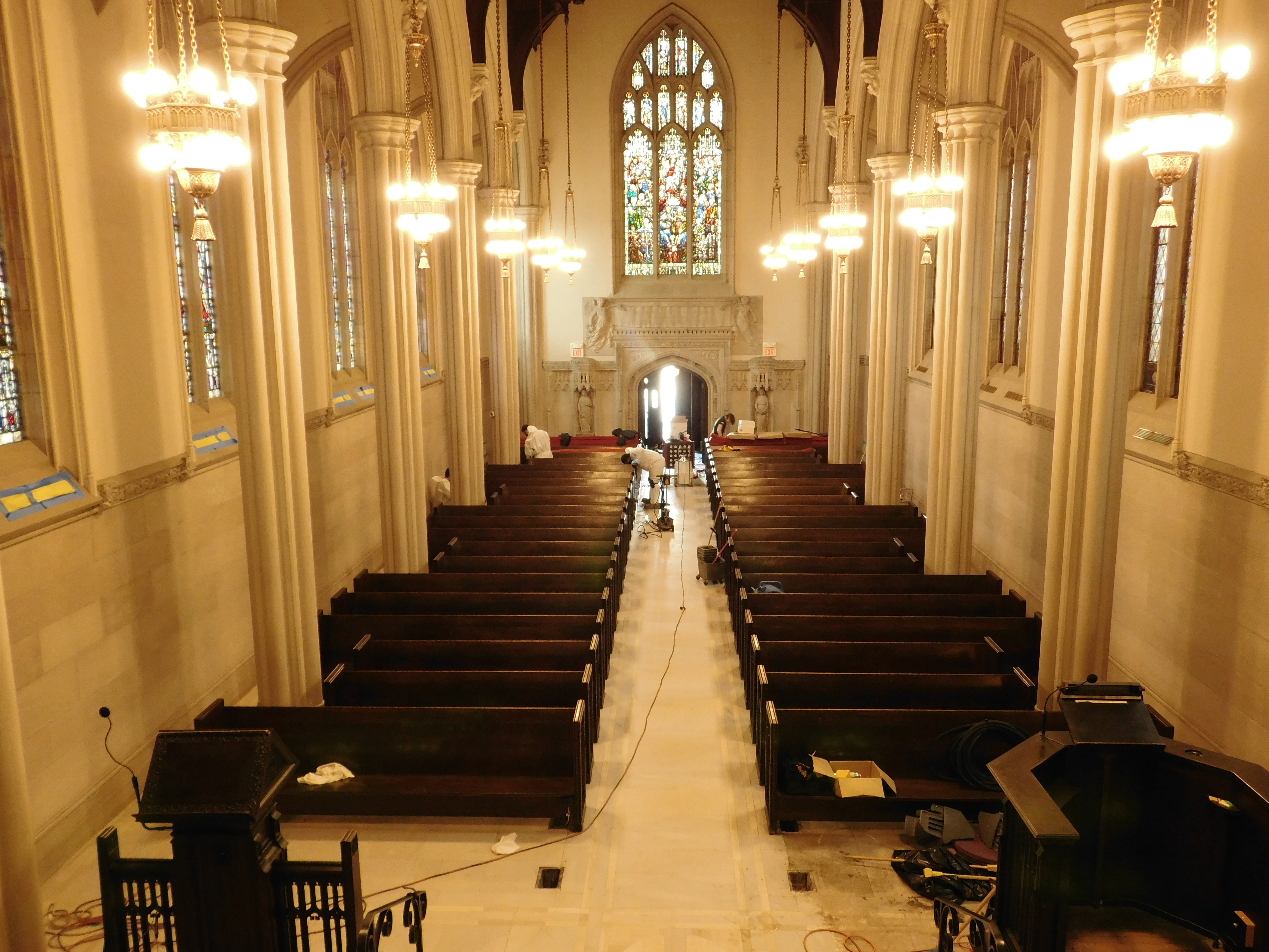 A stained glass specialist was brought in to care and clean for the intricate and delicate stained glass, which are pieces of art in themselves. This task went on simultaneously as the cleaning occurred.